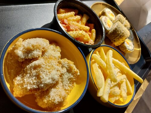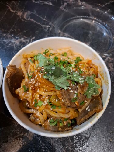 Очень вкусное место и уютное. Ходим сюда уже с год, наверное. Из последнего Пибиран с черными грибами просто объедение 🤤 А ещё всегда берём чикен-попкорн, время времени токпокки, и просто обожаем персиковый чай ❤️